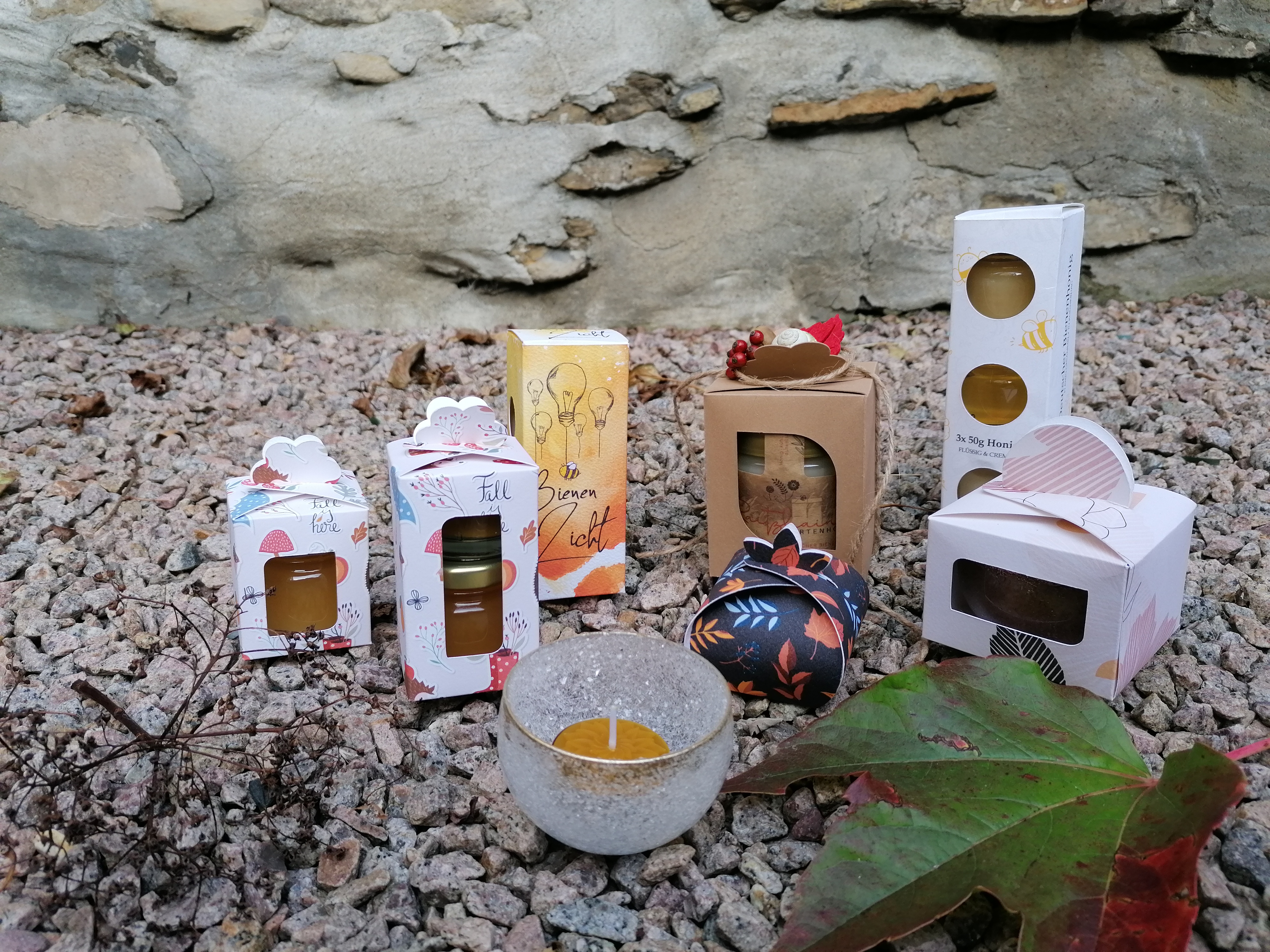 Seit 2020 hat sich eine tolle Kooperation mit der Imkerei von André Kopacek ergeben. Ich produziere aus dem Wachs der Imkerei - handgegossene Bienenwachskerzen - "Teelichter" und "Kerzen im Glas".